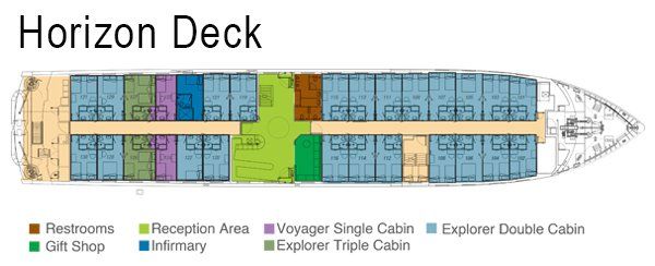 The Santa Cruz II is a vessel in the Galapagos Islands , very modern and designed to visit the furthest parts of the islands . It is approximately 235 feet long or around 72 meters is very spacious and comfortable, with 50 cabins in five decks can accommodate up to 90 guests, indoors and outdoors social areas will let you enjoy your visit to the Galapagos . With top of the line sustainable navigation systems , the Santa Cruz II is very environmentally conscious and protective of the delicate eco system .
